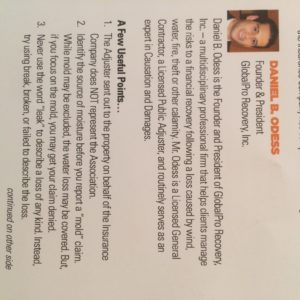 Do you know what to do if a hurricane threatens your region? What about a flood, fire or other natural disaster? GlobalPro Recovery President Daniel Odess was a featured panelist for “Disaster Preparedness 101,” an August 17 forum for community association board members, managers and other professionals at the Hotel Urbano in downtown Miami.At the Brickell Homeowners Association seminar, experts from different professions discussed various topics that provided participants with practical advice to survive a disaster when it strikes. In his presentation, Odess emphasized the importance of pre-disaster planning, such as reviewing your insurance coverage on a regular basis, and understanding the limitations, exclusions and deductibles in today’s policies. Odess also discussed the post-disaster steps, including filing insurance claims and what associations should do when approached by restoration contractors.